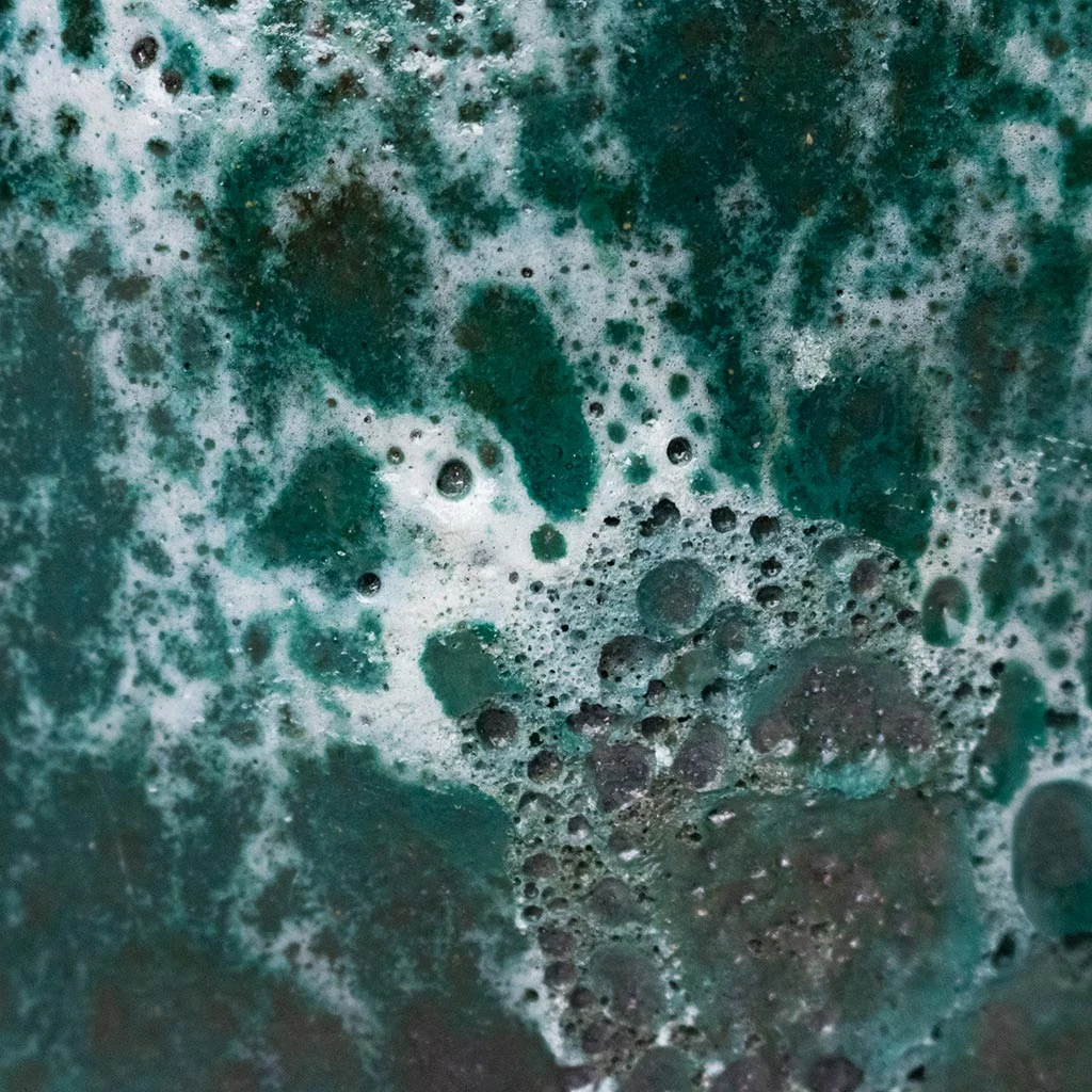 Handcrafted and fired in traditional wood-fuelled ovens, each Lava Oval Relic Planter features unique volcanic patterns in verdant green and white tones giving the appearance of a foaming sea. Its distinctive shape and texture will add a touch of unique nature-inspired style to any room.